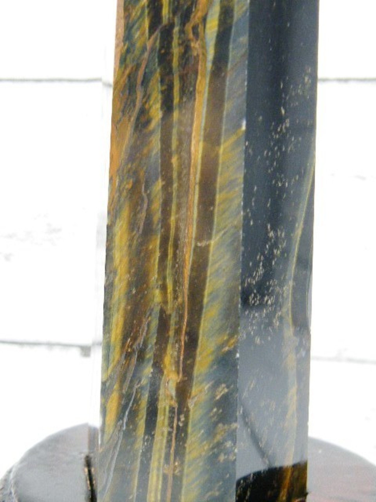 ・この六角柱は、上部が(ブラウン)タイガーアイの中に、ブルータイガーアイが含まれ、ダブルミーニングでもっていただきたい貴重な逸品です。
